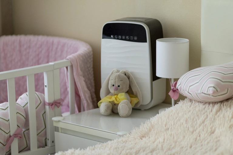 Mùa đông, nhiều gia đình dùng điều hoà 2 chiều hoặc máy sưởi, quạt sưởi để giữ ấm phòng cho bé. Tuy nhiên, không khí bị làm nóng quá mức, lại không bổ sung độ ẩm có thể khiến da bé khô rát, nứt nẻ, môi bong tróc, da gò má đỏ, dễ kích ứng. Một số bé còn bị khô mũi, khô họng, dễ viêm đường hô hấp khi nằm trong môi trường quá khô.