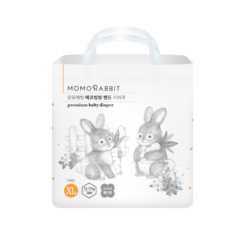 Giữ phong cách Hàn Quốc tinh tế, xinh xắn, bỉm dán Momo Rabbit vẫn trung thành với màu trắng, xám dễ thương với các hoạ tiết thỏ vẽ tay vô cùng đáng yêu. Các họa tiết trên bao bì thay đổi một chút giúp mẹ dễ phân biệt phiên bản mới với phiên bản trước đây. Dải màu vẫn được giữ nguyên giúp mẹ phân biệt dễ dàng các size bỉm, tránh mua nhầm.