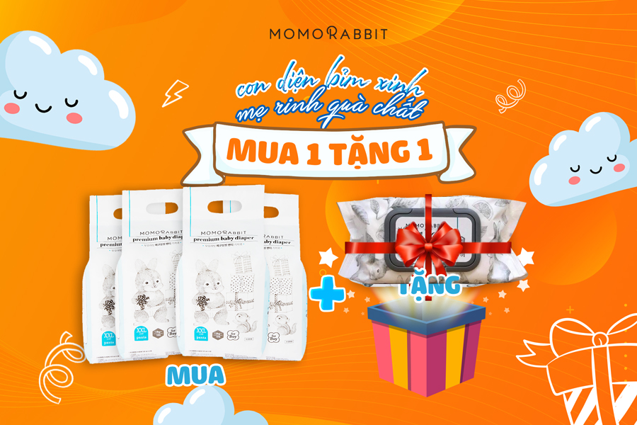 👉Với 01 thùng 4 bịch bỉm bất kỳ của MOMO RABBIT, mẹ sẽ nhận ngay 01 hộp khăn ướt Momo Rabbit cao cấp 72 tờ HOÀN TOÀN MIỄN PHÍ!
