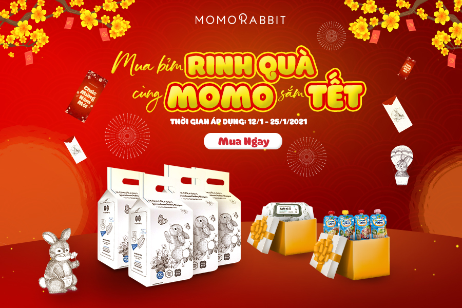 Tết đã tới rất gần rồi, mẹ đừng quên sắm bỉm diện Tết cho con và rinh thật nhiều quà của MOMO RABBIT nhé!