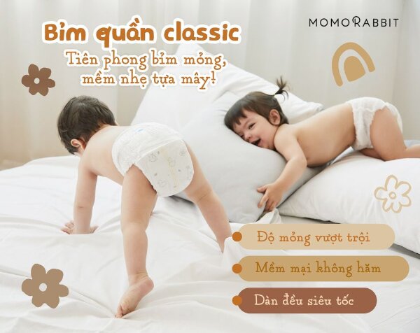Bỉm quần Momo Rabbit Classic siêu thấm hút, mềm mại nâng niu làn da bé.