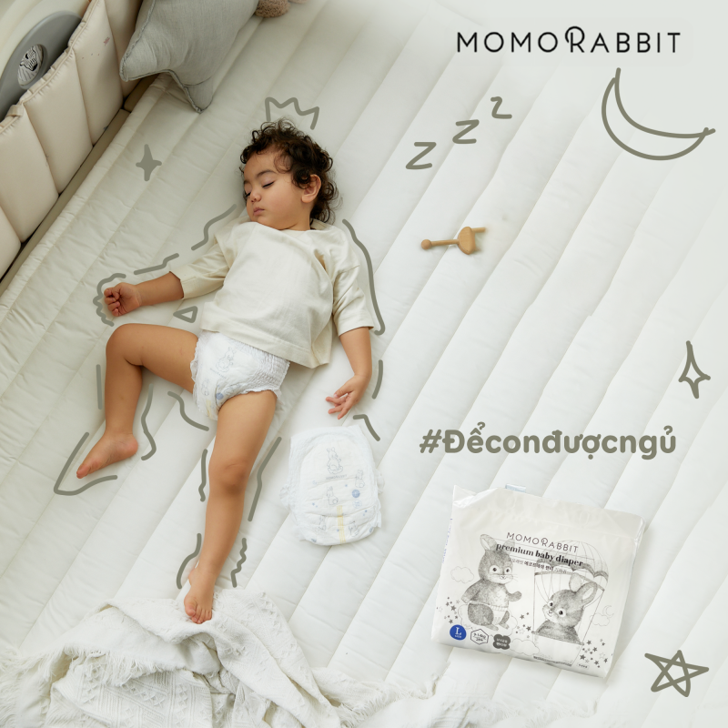 Momo Rabbit hân hạnh đồng hành cùng các mẹ bỉm sữa luyện bé ngủ xuyên đêm một cách hiệu quả nhất với dòng sản phẩm bỉm đêm thật sự chất lượng. Hãy lựa chọn bỉm phù hợp đến từ nhãn hàng tin cậy để con có giấc ngủ đêm chất lượng mẹ nhé. Mẹ có thể tham khảo các mối nguy hại từ bỉm kém chất lượng tại bài viết này. Hi vọng với thông tin hữu ích trên, mẹ sẽ phần nào có thêm thông tin để áp dụng luyện ngủ xuyên đêm nhanh chóng và hiệu quả nhất.