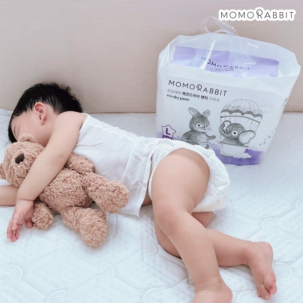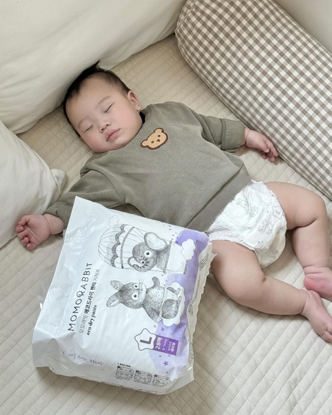 Momo Rabbit là thương hiệu bỉm nổi bật của Hàn Quốc, nổi tiếng nhiều năm với dòng sản phẩm bỉm chuyên dùng cho bé ban đêm. Bỉm đêm Momo Rabbit với định hướng tăng cường khả năng thấm hút và chống tràn cho giấc ngủ dài. Lõi thấm hút hạt SAP dung tích lớn lên tới 1,6l chất lỏng giúp giữ khô ráo nhiều giờ liên tục, trong khi thiết kế vách chống tràn cao 4,5cm hỗ trợ hạn chế rò rỉ khi bé nằm nghiêng hoặc lăn trở.