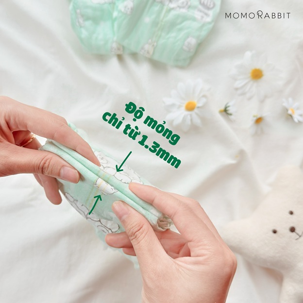 Độ mỏng của bỉm Momo Rabbit Friends chỉ từ 1.3mm