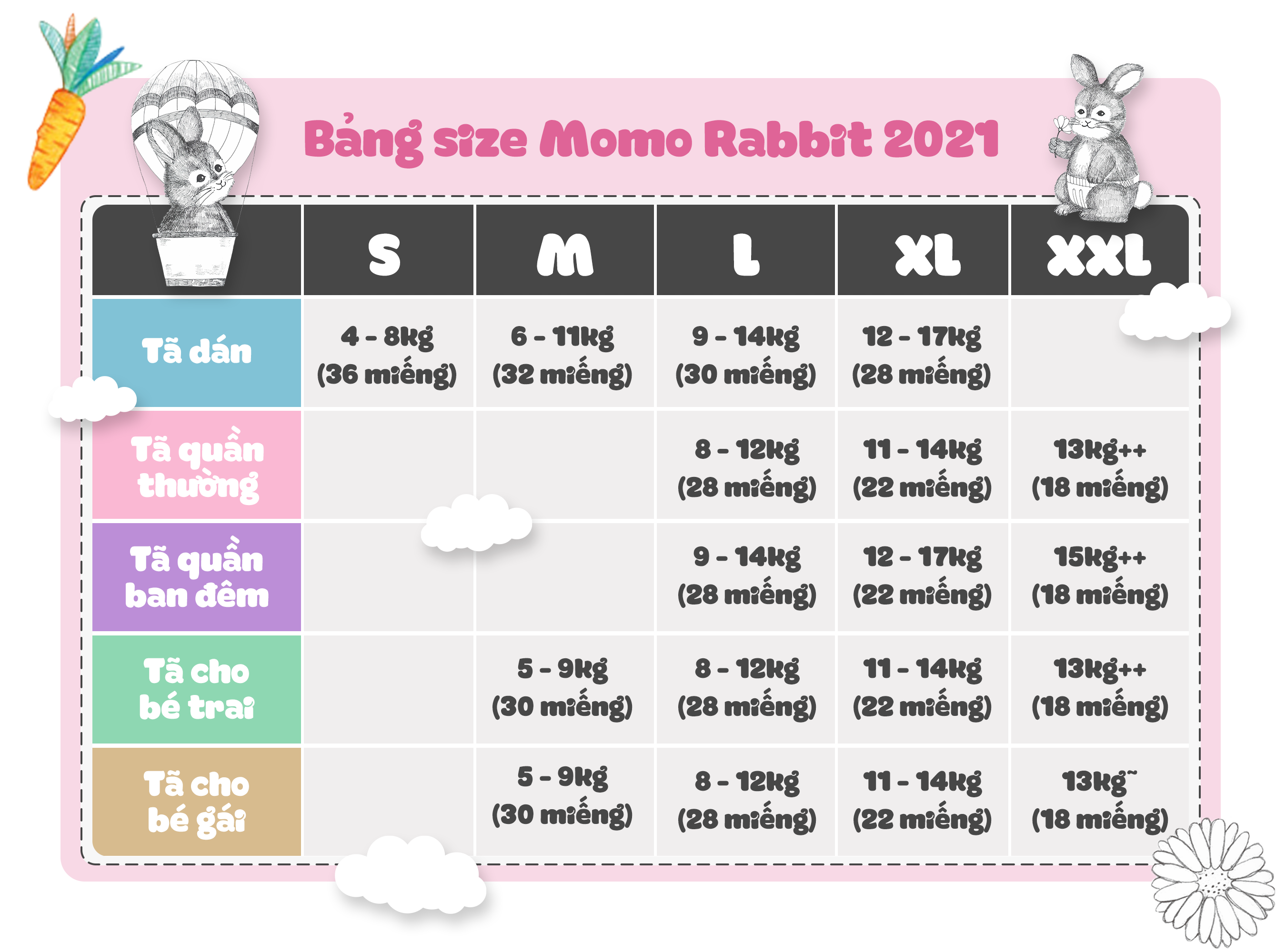 Bảng size Momo Rabbit cập nhật tháng 6/2021